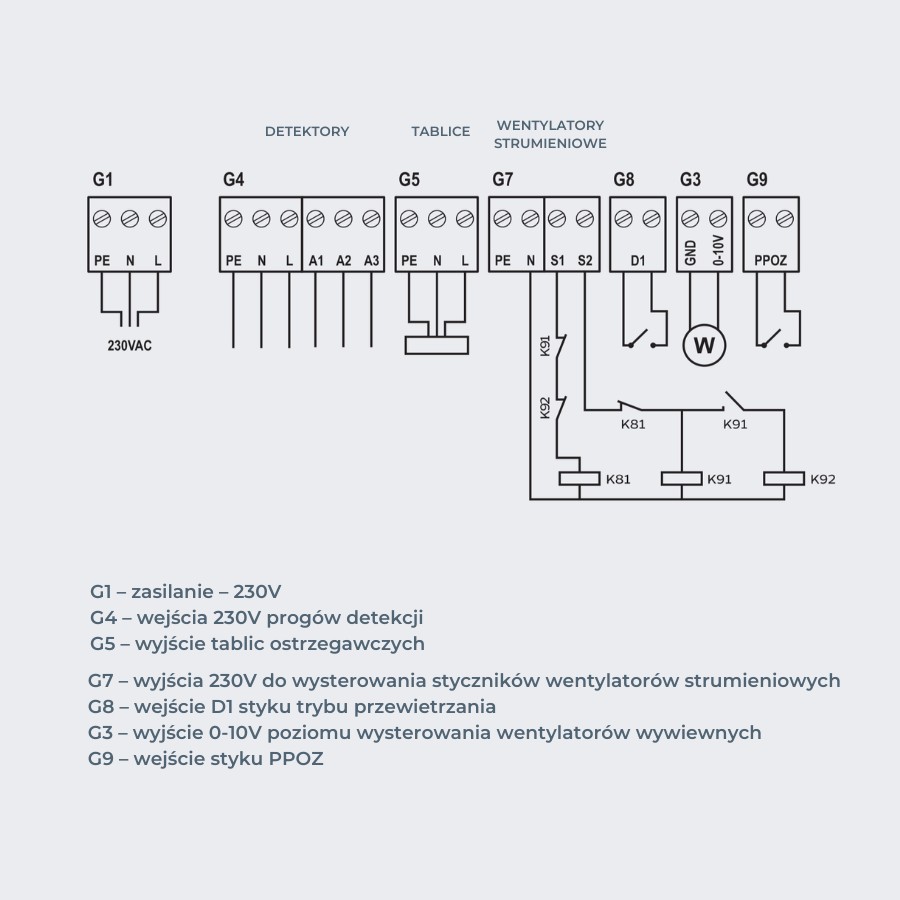 • opcja podpięcia dodatkowego sygnału wejściowego wyzwalającego przewietrzanie, np. za pomocą czujnika temperatury (brak w zestawie),