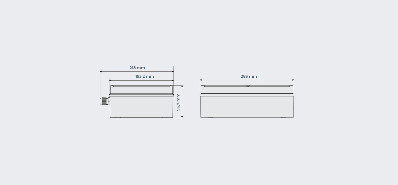 Wymiary obudowy w mm (z przepustami) 283 x 218 x 96,7
